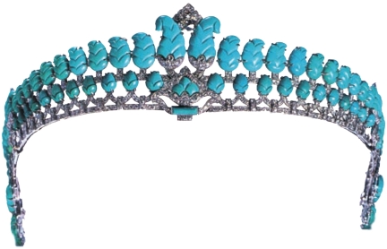 用绿松石、钻石和铂金制成的《棕榈叶冠冕》,1936年法国著名珠宝商卡地亚的作品