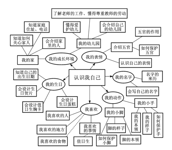 根据幼儿感兴趣的内容我们一起预设这几个单元,单元之间是平行关系的,这是这个主题活动的特别之处,直线表示的是老师预设的内容,虚线表示的是幼儿自发生成的内容。