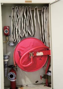 室内消火栓是扑救建筑火灾的重要设施,通常置于室内消火栓箱内,消火栓箱由箱体、消防水枪、消防水带、室内消火栓、消防软管卷盘和消火栓启泵按钮等组件构成。