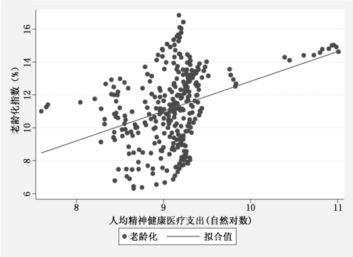 本文实证结果也显示性别比(男性/女性)与精神健康支出间存在显著的负相关关系,此结果意味一个小区的女性人口的比例越高,将会有更高的精神医疗支出。尽管焦虑和抑郁在两性中都普遍存在,但一般而言,女性较男性容易受到荷尔蒙变化的影响。因此,女性更容易出现一些性别相关的焦虑和抑郁,比如产期前后忧郁症(perinatal depression)、经前焦虑障碍(premenstrual dysphoric disorder),以及更年期忧郁症(perimenopause-related depression)等。此外,女性的预期余命较男性长,因此,本文的估计结果显示,随着人口老龄化和女性居民比例的增加,社会的精神疾病医疗支出便跟着增加。