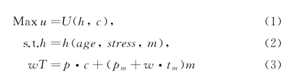 本文参考格罗斯曼的文献,建立医疗服务的最适需求模型。本文假每一个经济个体在生活中所得到的满意度取决于他们的身心健康状况和消费水平。每一个经济个体在健康状况(h)、商品与劳务的消费水平(c),以及其他的限制条件下,追求的效用的最大化。因此,此一效用最大化的模型为:
