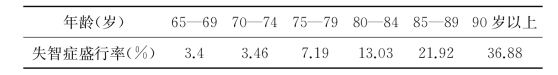 表4 台湾65岁以上五岁年龄组之失智症盛行率
