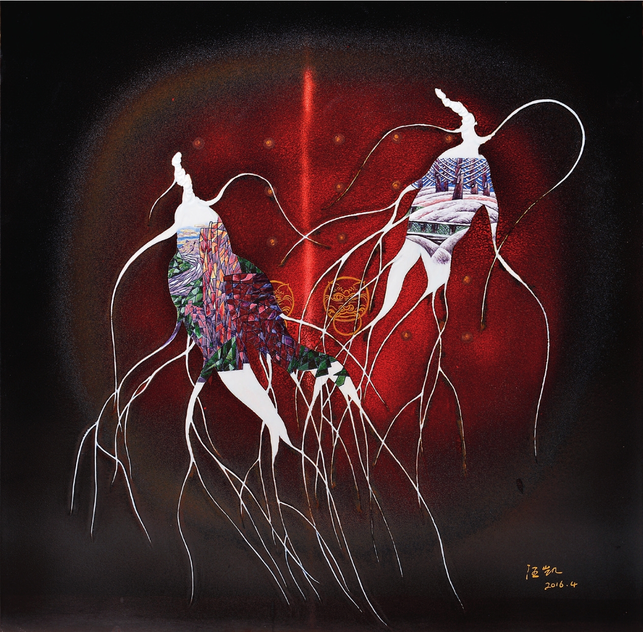 我们的课题,有人工智能;有宇宙学;有虚拟现实。我们还有溯源,有我们文化的特点,也就是我们的历史文化。它不是线性的,它是非线性的,是螺旋性的一种演变。这就很像中医,中医我还不是很懂。但是,中医的哲学思想和我们传统文化的哲学思想是一脉相承的。首先,我们说整个世界是一体的,所以中医可以用号脉的方式摸到你的五脏六腑。西医并不是这样,西医直接剖开你的肚子,看哪有毛病。但是中医号脉就知道了,这是为什么呢?是因为这是一体的,我们跟宇宙都是一体的。所以我们才有道家的修炼,有内丹外丹,皇帝练经也是在中医范畴里面的。我是谈我个人的一些想法,因为我的创作有一点延续性。我现在的创作是找到了一个偏门,找到了一个方式。我在有哲学地创作,有结构地创作,有编剧地创作。