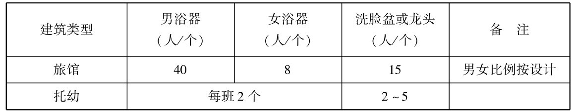 表2.4 浴室、盥洗室设备个数参考指标