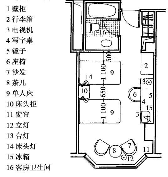 图2.17 旅馆客房布置实例