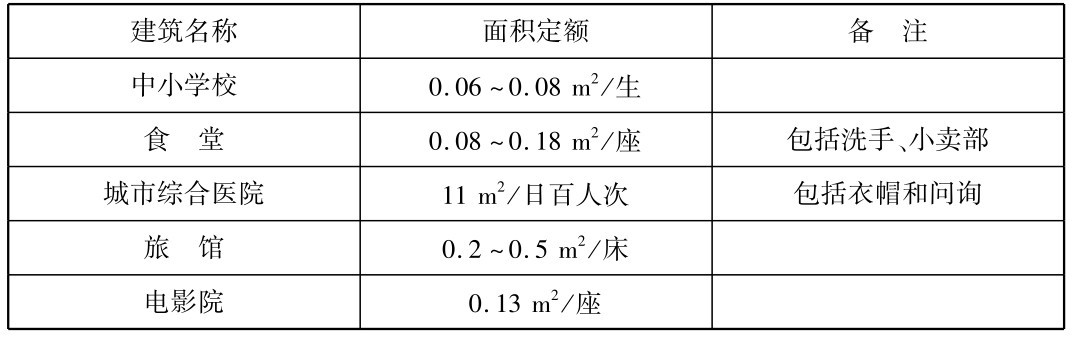 表2.9 部分建筑门厅面积设计参考指标