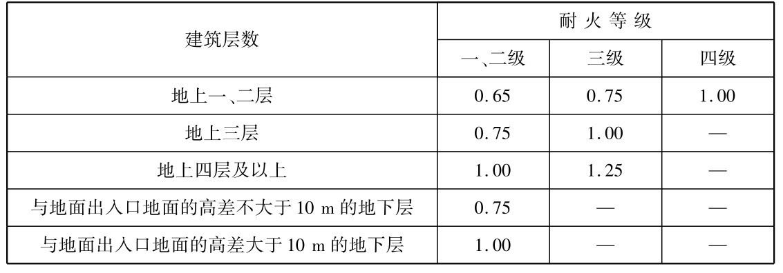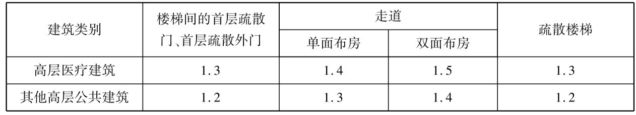 表2.5 每层疏散走道、安全出口、疏散楼梯和房间疏散门的每100人所需净宽度/m