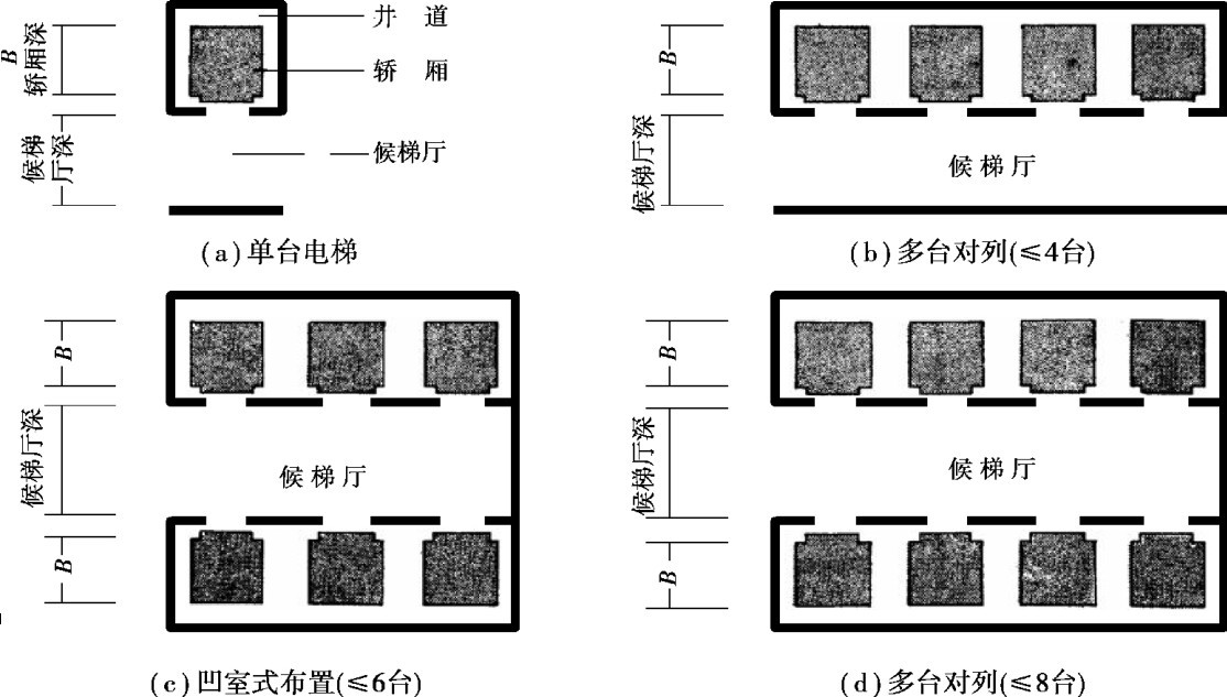 电梯的布置方式有单面布置和双面布置,如图2.26所示。