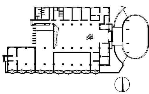 图2.44 放射式空间组合示例(某纪念馆)