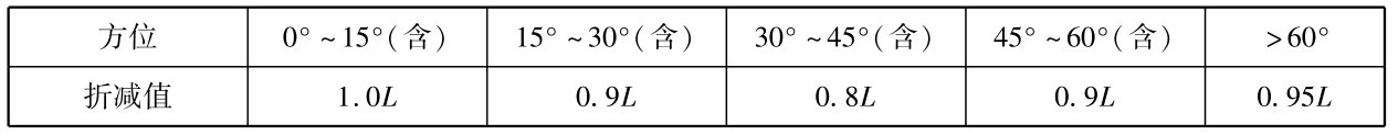 表2.10 不同方位间距折减换算表