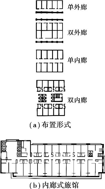 走道有内廊和外廊之分。 内廊式组合用地节省、平面紧凑,但采光通风条件相对较差;外廊式组合占地较大,不够经济,但采光通风较好。
