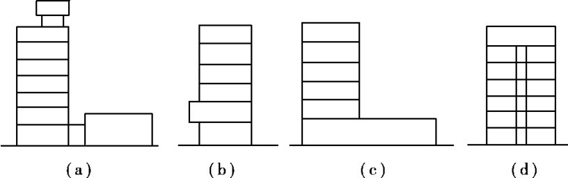 某些类型的建筑,虽然绝大部分房间为小空间,但由于功能要求还需布置少量大空间,如教学楼中的阶梯教室,办公楼中的大会议室,旅馆中的餐厅、临街住宅中的营业厅等。 这类建筑在空间组合中常以小空间组合形成主体,将大空间附建于主体建筑旁,从而不受层高与结构的限制;或将大小空间上下叠合起来,分别将大空间布置在主体的顶部或底部(图3.18)。