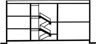 有的建筑由于使用要求或房间大小不同,出现了高低差别。 如教学楼中教室的高度通常就比办公室大。 为了节约空间、降低造价,可将它们分别集中布置,采取不同的层高,以楼梯或踏步来解决两部分空间的联系(如图3.16)。