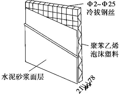泰柏板又称为钢丝网泡沫塑料水泥砂浆复合墙板。 它是以焊接钢丝2mm网笼为构架,填充泡沫塑料芯层,面层经喷涂或抹水泥砂浆而成的轻质板材。