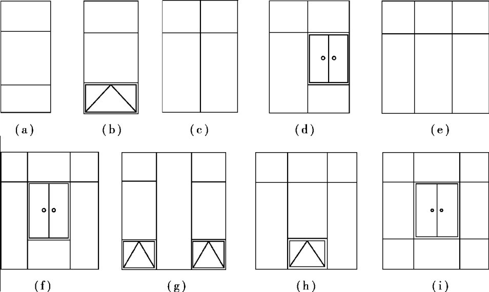 玻璃幕墙的立面划分系指竖梃和横档组成的框格形状和大小的确定。 立面划分与幕墙使用的材料规格、风荷载大小、室内装修要求、建筑立面造型等因素密切相关。 图7.74是分件式玻璃幕墙立面划分的几种分格方式。