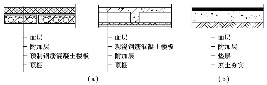 楼板层主要由面层、结构层、顶棚及附加层组成。 如图8.1(a)所示。