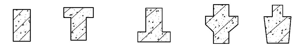 梁的断面形式如图8.14所示,有矩形、T形、十字形、花篮形等。 矩形截面梁外形简单,制作方便;T形截面梁较矩形截面梁自重轻;采用十字形或花篮形梁可减少楼板所占的空间高度。 通常梁的跨度尺寸为5~8m较为经济,如图8.15所示。