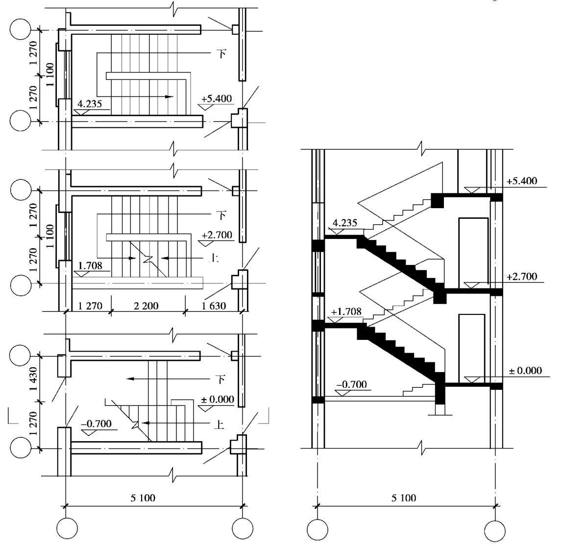 在进行楼梯构造设计时,必须符合建筑性质,建筑等级及防火规范等一系列设计规范的规定,同时应对楼梯各细部尺寸及净空高度进行详细计算。