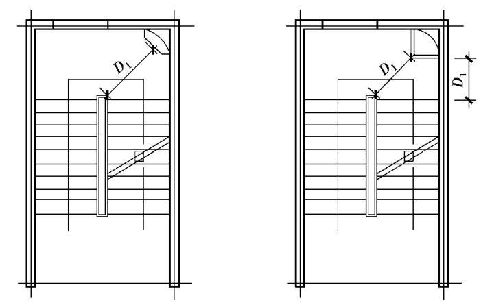 楼梯中间平台D1和楼层平台D2必须满足如图9.9所述外,还应考虑: