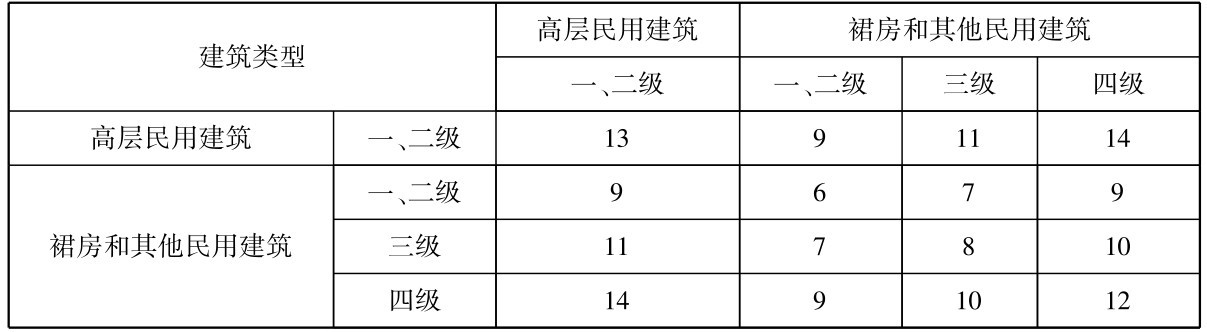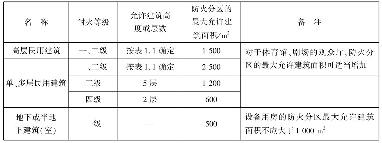 表13.2 不同耐火等级建筑的允许建筑高度或层数、防火分区最大允许建筑面积