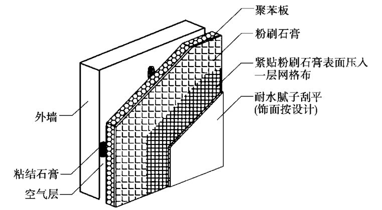 内保温复合墙体是指承重材料与高效保温材料进行复合使用的墙体,主要由以下层次组成: