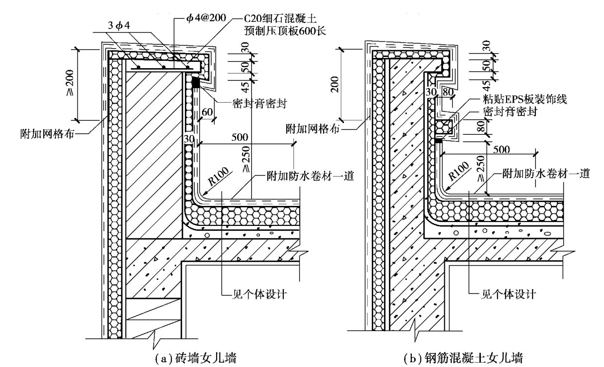 图13.29 保温平屋面女儿墙构造