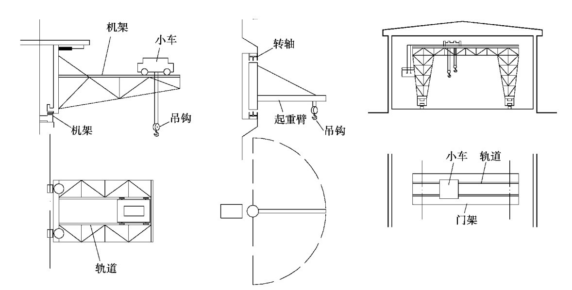 每种工业产品都有一定的生产工艺流程,许多产品的生产是在流动中完成的。 因此,在工业厂房内应根据原材料和产品的重量,布置相应的起重运输设备。 常用的起重运输设备有单轨悬挂式吊车、梁式吊车、桥式吊车、悬臂移动式吊车、固定转臂式吊车等。
