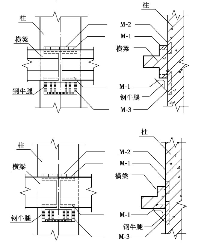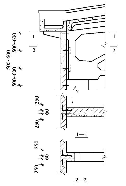 a.柔性连接。 柔性连接是通过设置预埋铁件和其他辅助件使墙板和排架柱相连接。 柱只承受由墙板传给的水平荷载,而墙板的质量不加给柱子是由基础梁或勒脚墙板承担。