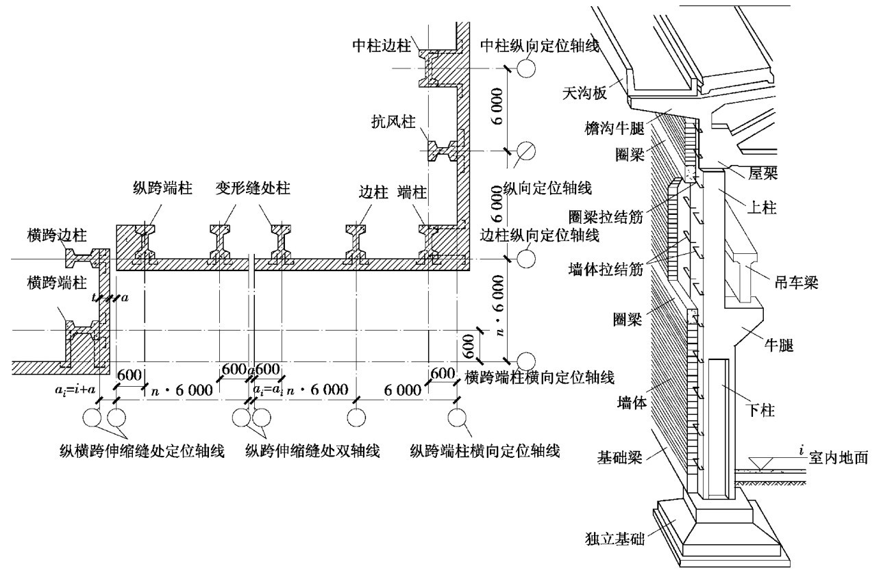 不在墙内的连系梁主要作用是联系柱列以增加厂房的纵向刚度。 一般布置在多跨厂房的中列柱的顶端。