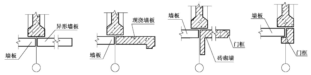 对板材墙中开设门洞部分,根据洞口尺寸采用异形板、补充构件或作局部现浇。 在振动影响不大的厂房门洞,也可采用局部砌砖(图16.24)。