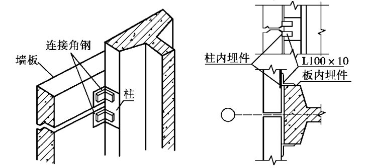 ①墙板与柱的连接 单层厂房的墙板与排架柱的连接,一般采用柔性连接和刚性连接两种方式。