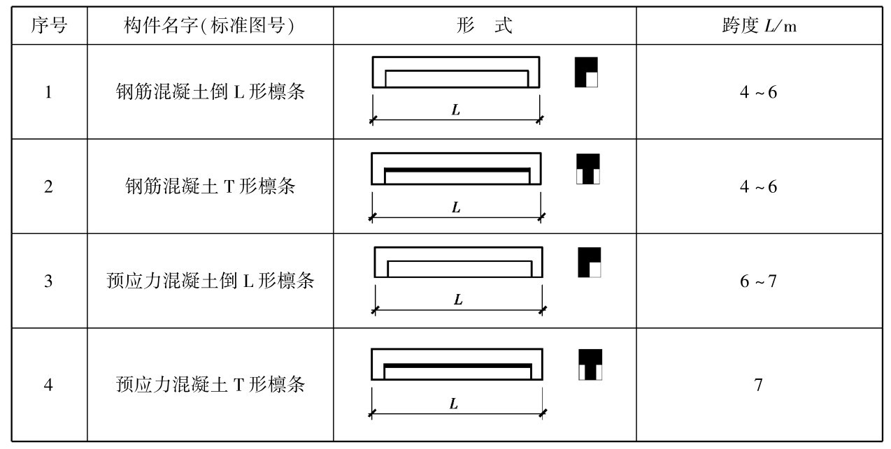 钢筋混凝土檩条和钢檩条常用的形式见表16.4。