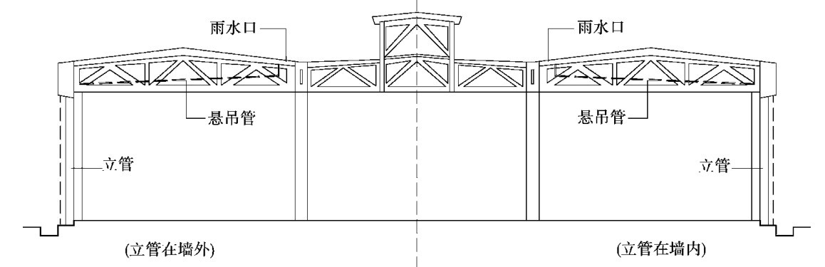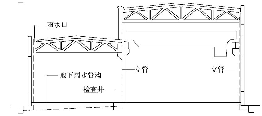 在南方应优先采用外排水。 严寒地区多跨单层厂房宜选用内排水方案。 常见有两种形式: