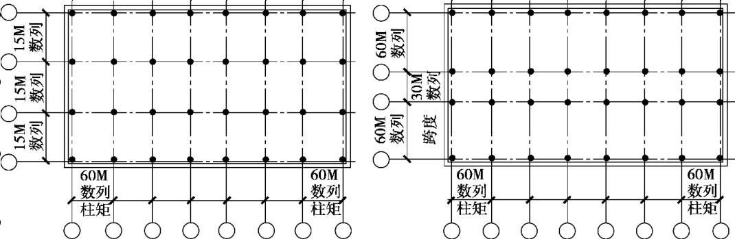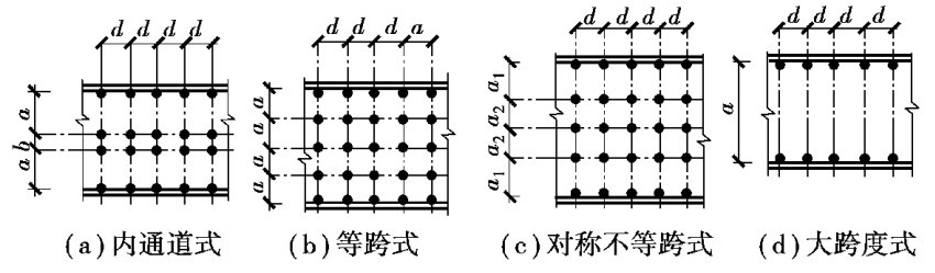 多层厂房的柱网一般有以下4种类型(图17.4和图17.5)。