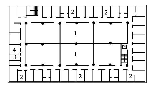 根据生产特点的不同,多层厂房的平面布置形式一般有以下4种: