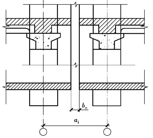 ②横向变形缝处应加设插入距的双柱,设两条横向定位轴线,柱的中心线应与横向定位轴线相重合(图17.7)。