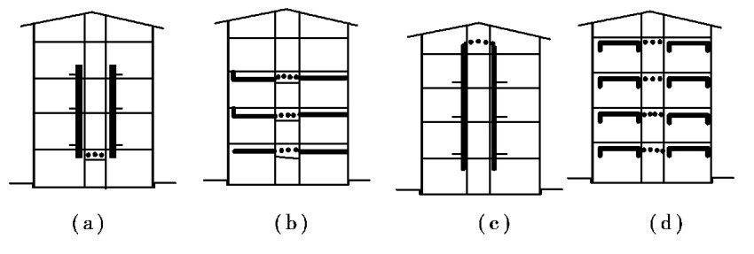 ③框架—剪力墙结构 为框架与剪力墙协同工作的一种结构体系,具有较大的承载能力。一般适用于层数较多、高度和荷载都较大的厂房。