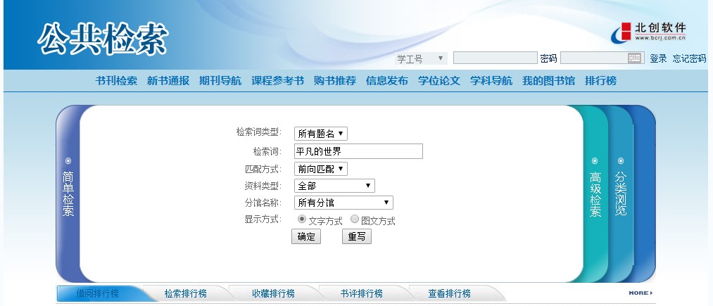 (1) 图书馆主页(http:// lib.buct.edu.cn),到图书馆各楼层检索机打开浏览器,进入“图书联机检索系统”,均可免费查询。