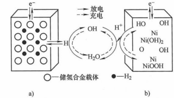 ;放电时氢气在负极上被消耗掉,正极由氢氧化镍变成氢氧化亚镍。