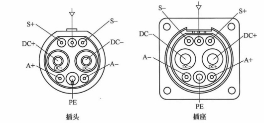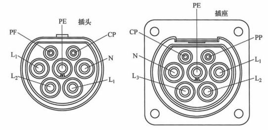 出于安全的考虑,在充电接口连接过程中端子连接顺序为,保护接地,直流电源正与直流电源负、低压辅助电源正、低压辅助电源负,充电电通信;在脱开的过程中则顺序相反。电动汽车的车辆控制装置能够通过测量检查点的峰值电压判断充电插头与充电插座是否充分连接。