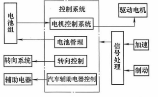 在电动汽车工作时,传感器将加速踏板、制动踏板机械位移的行程量转换为电信号,输入中央控制系统,经中央控制器处理后发出驱动信号,达到对电动汽车工况的控制。