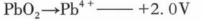 得到来自负极的两个电子(2e)后,变成二价铅离子