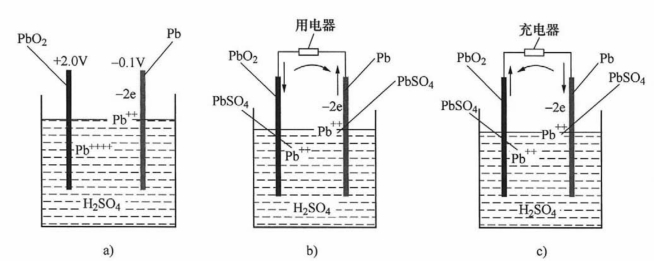 ①电池电动势的产生。正极板的二氧化铅在硫酸溶液中水分子的作用下,少量二氧化铅与水生成可离解的不稳定物质——氢氧化铅
