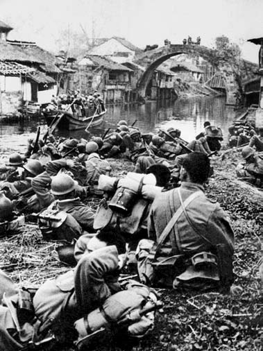 1937年11月12日,淞沪战役,日军登陆杭州湾,渡苏州河