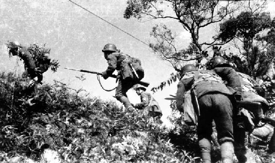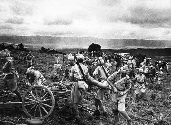 1942年1月,日军第15军司令官饭田祥二郎率部突然从泰国向驻缅英军发动进攻。此为日军在泰国边境上誓师的场景