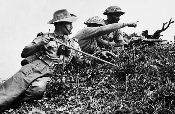 1944年11月28日,3名印度第5师士兵在缅甸坚尼峰侦察敌情