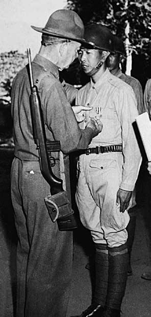1944年10月,在缅北前线,战区总司令索尔登中将向新38师官兵颁奖。师长李鸿少将被授予一枚勋章,以表彰他在胡康河谷和孟拱河谷诸战役中的杰出表现,李鸿当时是该师的一位上校团长