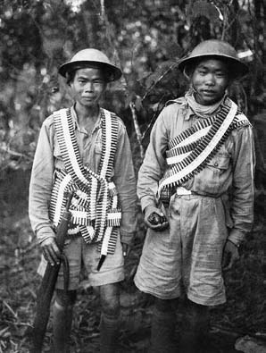 1944年12月,滇缅公路38英里路标处,手持1917年美制带刺刀步枪、握着手雷的中国驻印军新1军新30师士兵