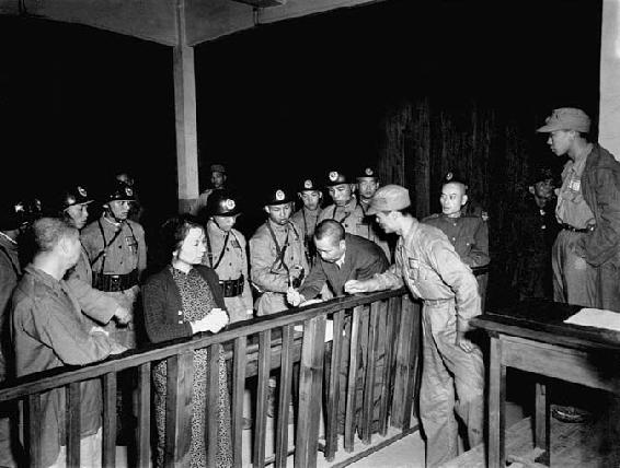 1950年,台湾“吴石案”涉案人(由左至右)陈宝仓、朱谌之(朱枫)、吴石、聂曦在判决现场。获知死刑判决后,吴石留下遗书