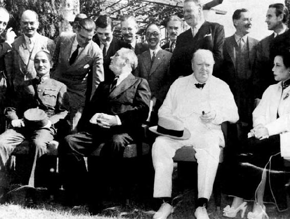 1943年11月开罗会议期间的合影,从左至右:蒋介石、罗斯福、丘吉尔、宋美龄